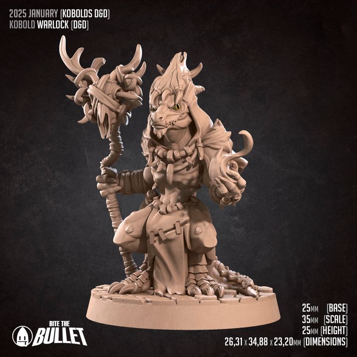 The Kobold Warlock by Bite the Bullet is a whimsical yet eerie miniature that blends kobold mischief with the mysterious power of forbidden pacts. Cloaked in arcane robes and wielding eldritch energy, this character brings a unique mix of charm and menace to any fantasy tabletop game. Designed for 32–35mm scale systems like Dungeons & Dragons, the model may require light assembly. Whether portrayed as a chaotic spellcaster, a cunning villain, or a surprising ally, the Kobold Warlock adds depth, magic, and storytelling flair to any campaign.