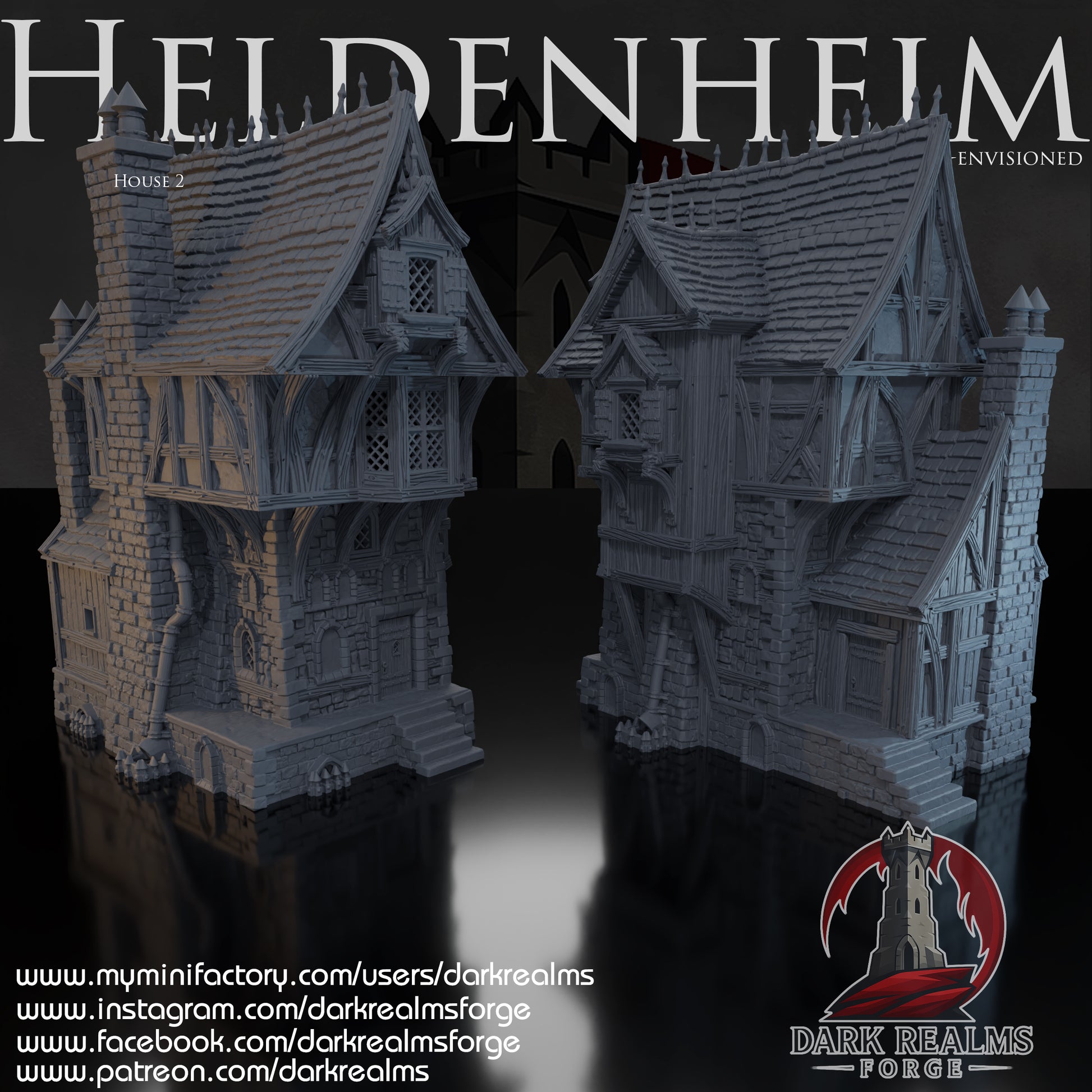 New Heldenheim House 2 by DarkRealms brings the warmth and character of a lived‑in medieval settlement straight to your tabletop. Designed with beautifully sculpted timber framing, stone foundations, and layered architectural details, this house feels like it belongs in the heart of a bustling village, a frontier outpost, or a story‑driven RPG hub. Its rich textures and thoughtful design make it a joy to paint and a standout piece in any diorama or wargaming setup. Whether you're building a peaceful town scene or setting the stage for adventure, New Heldenheim House 2 adds depth, atmosphere, and undeniable charm to your fantasy or historical terrain collection.