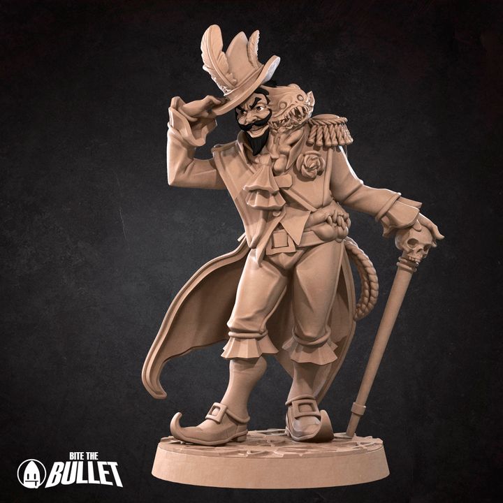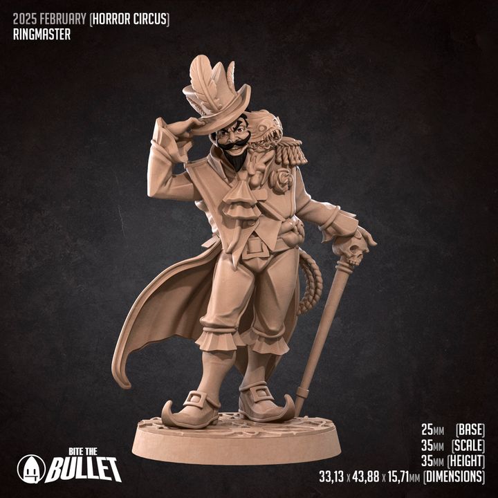 The Ringmaster by Bite the Bullet is a striking miniature that embodies showmanship, authority, and a touch of madness. With a flamboyant outfit, commanding pose, and an aura of theatrical dominance, this character is the heart of any fantasy circus or chaotic encounter. Designed for 32–35mm scale systems like Dungeons & Dragons, the model may require light assembly. Whether orchestrating a troupe of misfits, dazzling crowds with flair, or concealing a darker agenda beneath the spotlight, the Ringmaster brings drama, intrigue, and unforgettable presence to every tabletop performance.