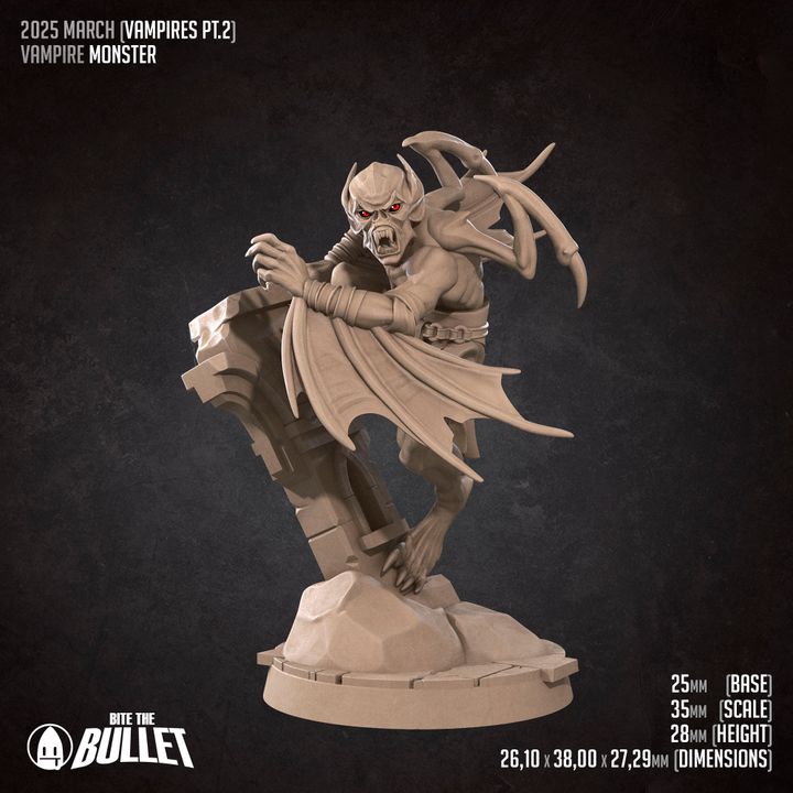 The Vampire Monster by Bite the Bullet is a grotesque and powerful miniature sculpted to embody the raw fury of vampiric corruption. With exaggerated features, monstrous anatomy, and a stance that radiates primal aggression, this creature is perfect for horror-infused tabletop games and cursed fantasy campaigns. Designed for 32–35mm scale systems like Dungeons & Dragons, the model may require light assembly. Whether unleashed as a boss enemy, a corrupted guardian, or a tragic remnant of blood magic, the Vampire Monster adds visceral intensity and gothic dread to any narrative.